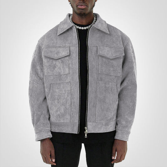 Wildlederjacke - Herren Kurzarm-Jacke mit Reißverschluss für den Herbst mit Taschen