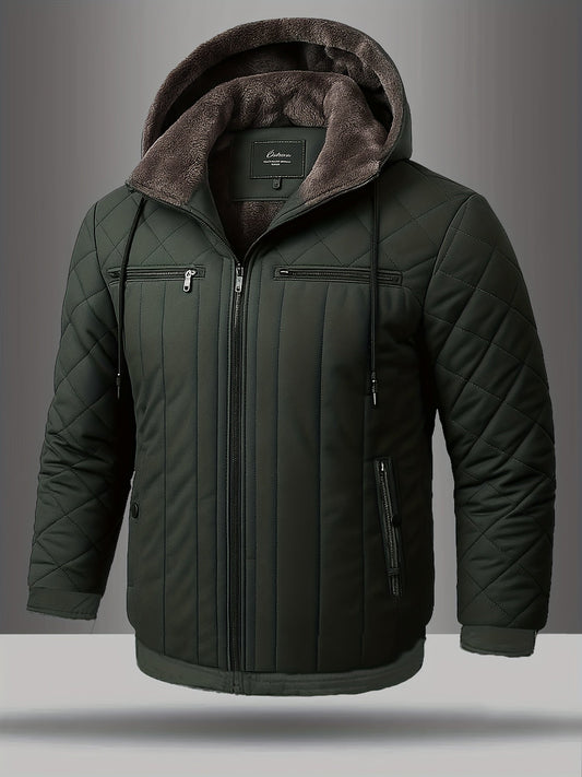 ÉCONOMISER [pourcentage]Herren Winter Zip-Jacke mit abnehmbarem Kapuzen – Warmer gepolsterter Mantel für kaltes Wetter