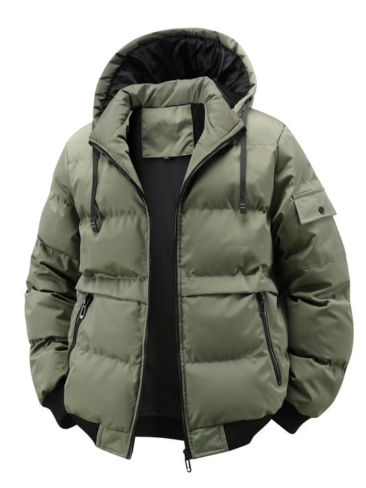 Herren Winddichte Puffer Bomberjacke mit durchgehendem Reißverschluss – Robustes Design mit abnehmbarer Kapuze