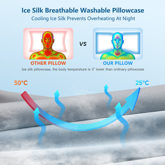 Oreiller cervical en mousse à mémoire de forme pour un soutien optimal de la nuque et des épaules, housse rafraîchissante en soie - Gris