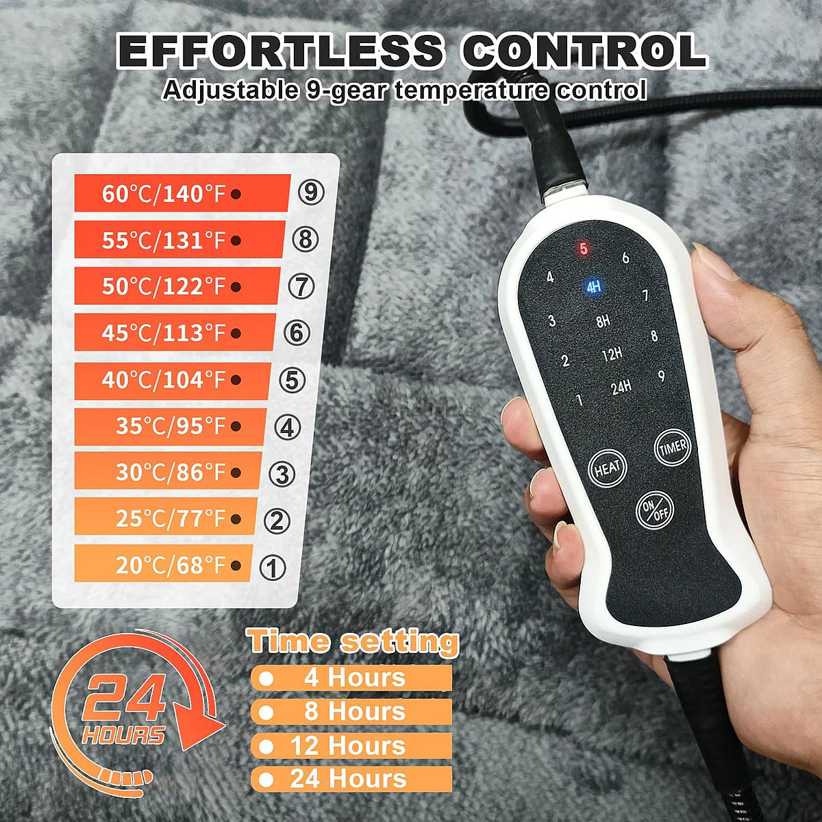 Protective Construction: A reinforced cord connection and built-in temperature sensor ensure steady operation, while the non-slip bottom keeps the bed securely in place on smooth floors.