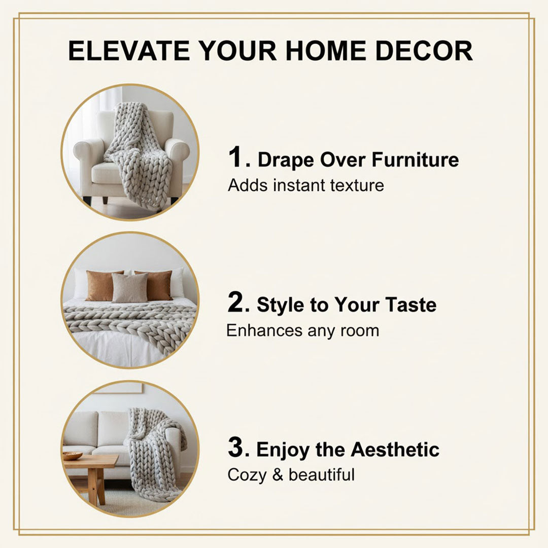 - Chunky Strickdesign: Dicke gestrickte Textur sorgt für visuelles Interesse und Wärme.