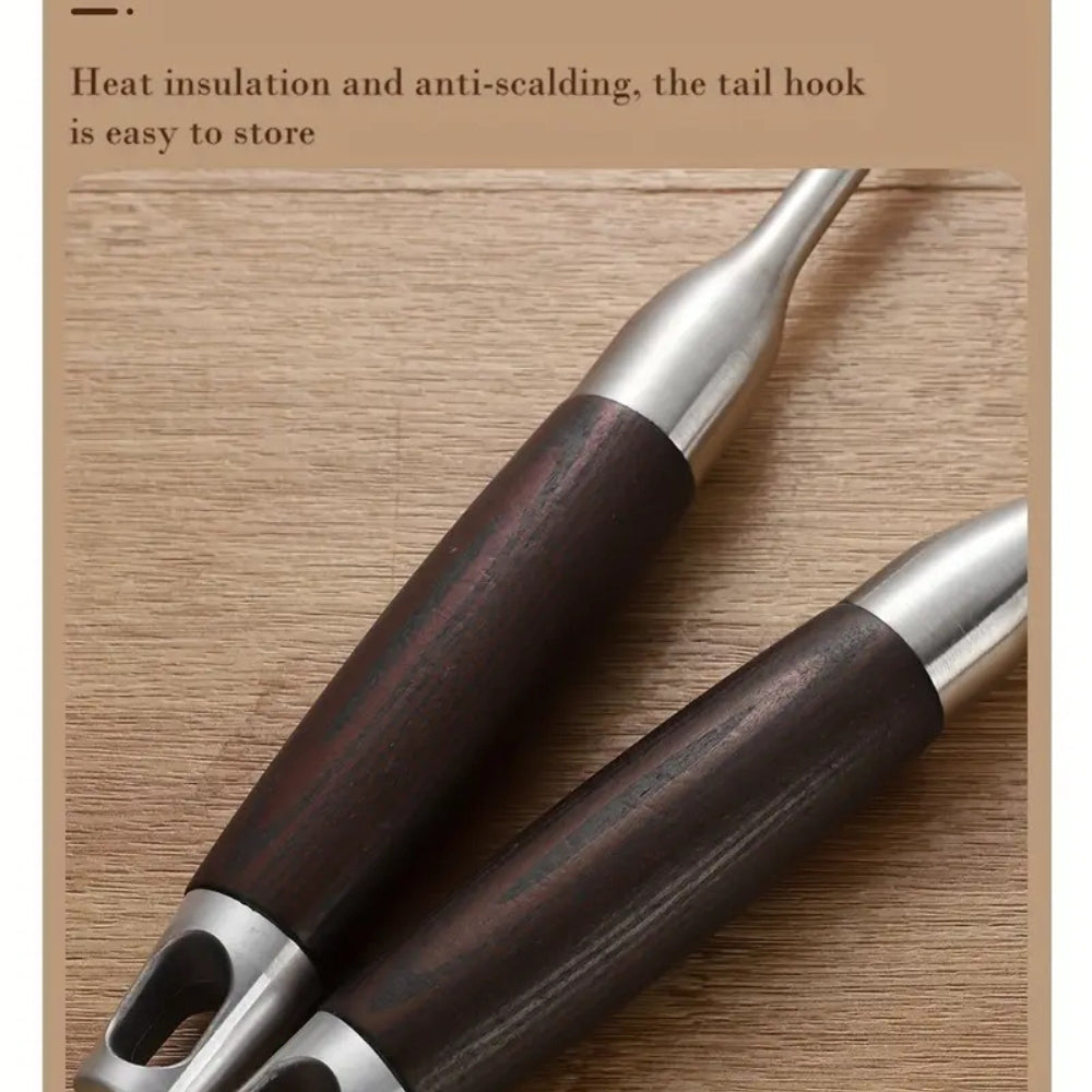 Rüsten Sie Ihre Küche mit dem glänzenden Edelstahl Holzutensilien-Set auf, une combinaison parfaite aus Haltbarkeit et Stil. Mit schlanken Edelstahlköpfen et ergonomischen Holzgriffen bietet ce 6-teilige Set Präzision, Comfort et Eleganz für jede Kochaufgabe. Idéal pour les amateurs et les professionnels !