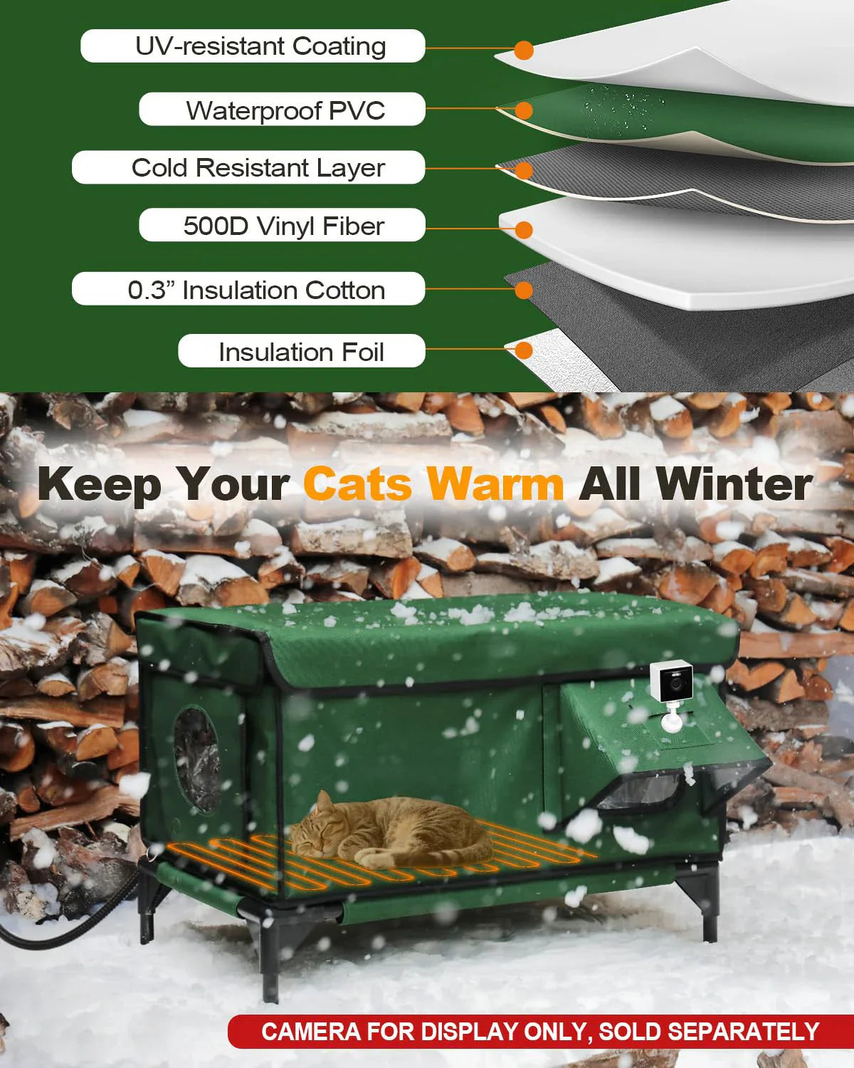 1. Isolation thermique : Dotée d'une isolation en feuille d'aluminium et d'un coussin chauffant intégré, cette maison pour chat maintient un environnement confortable pour les chats d'extérieur pendant les mois d'hiver.
