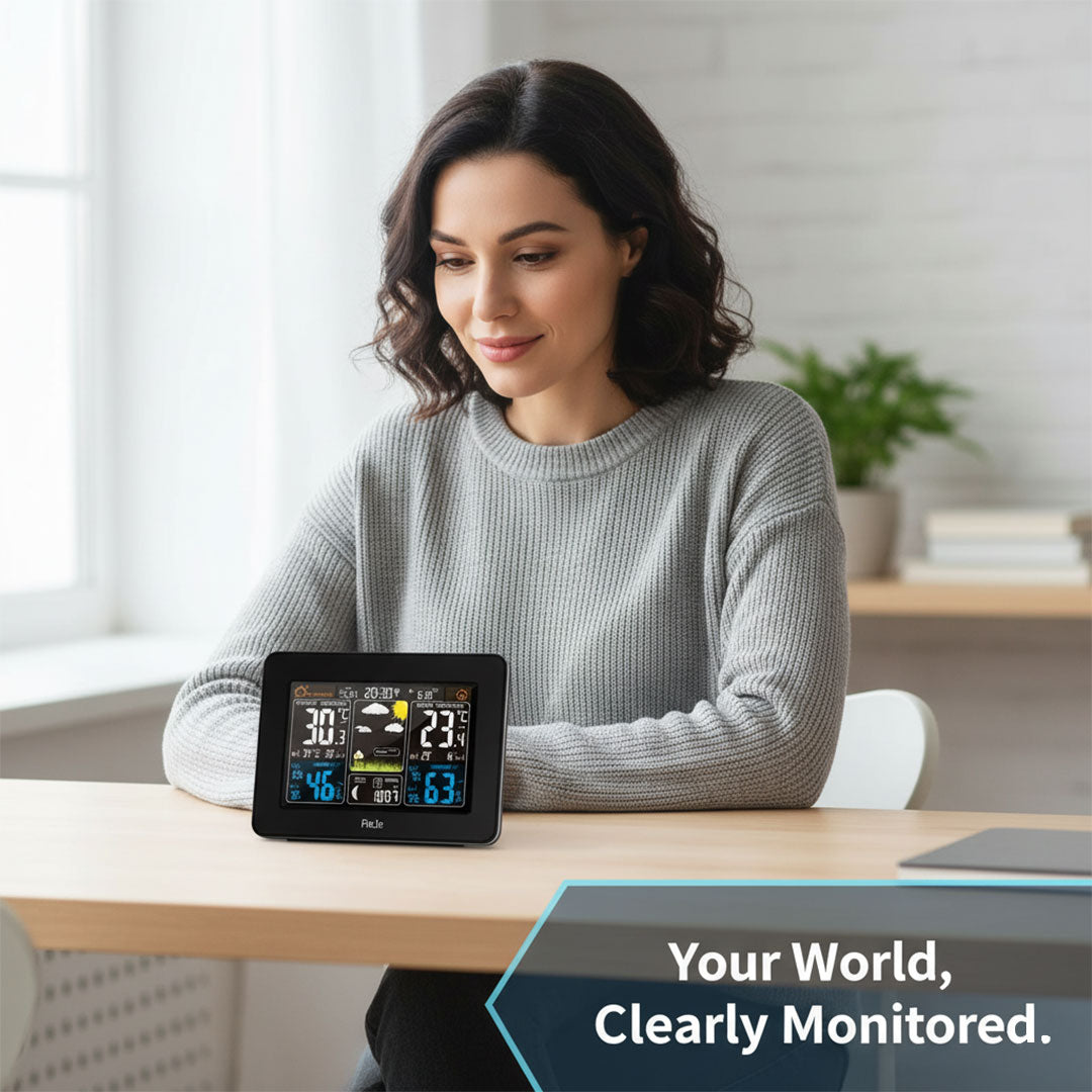 - Kabellose Überwachung: Verfolgt Temperatur und Luftfeuchtigkeit sowohl in Innen- als auch Außenbereichen.