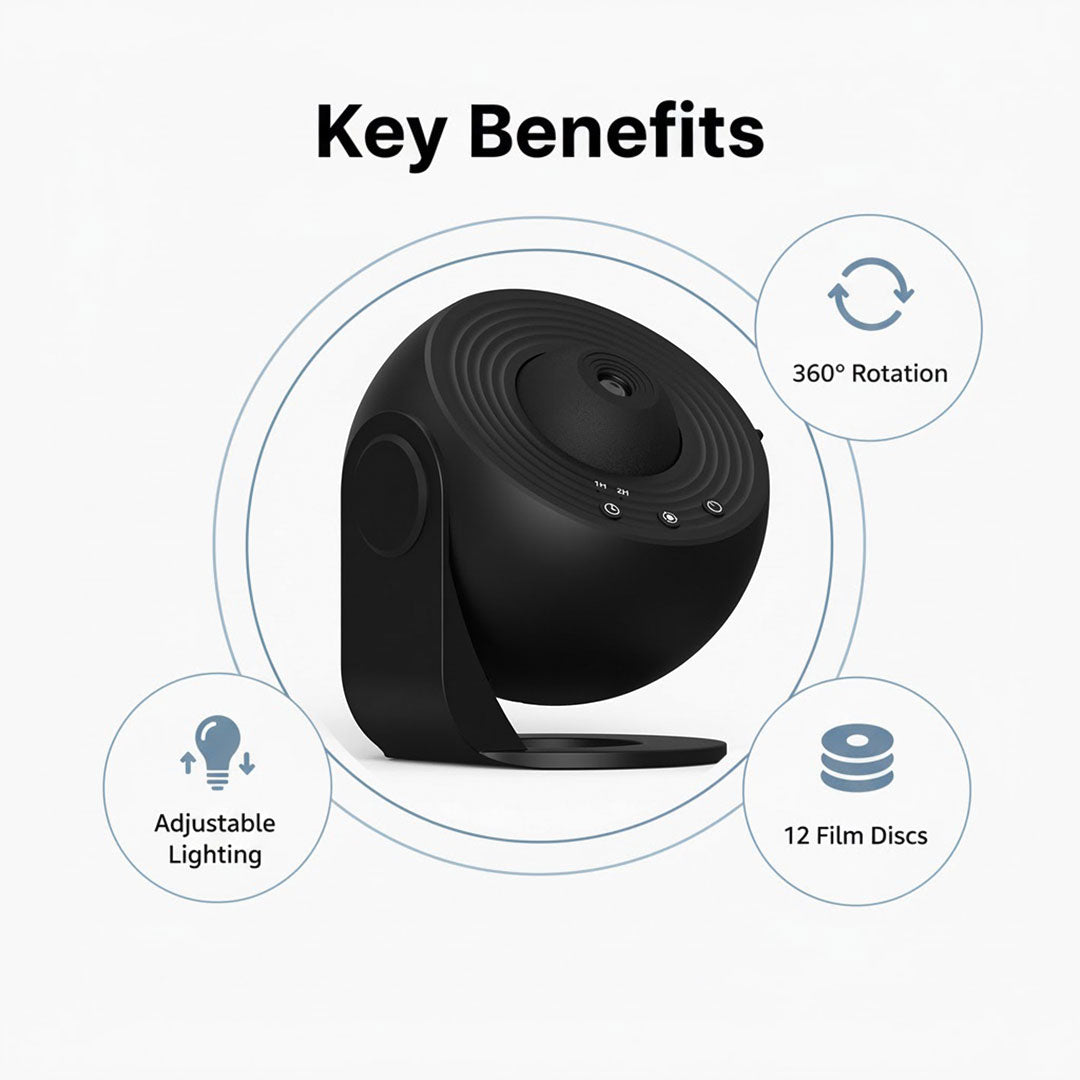 Ce projet de ciel étoilé pour enfants est conçu pour être présenté, des images de l'arrière dans l'espace à projeter et une image inspirée par Galaxien pour Schaffen. Avec de nombreux modes de projection, il existe une gestion de l'éclairage et de la sécurité. La connexion USB est destinée à la prise en charge de chaque enfant.