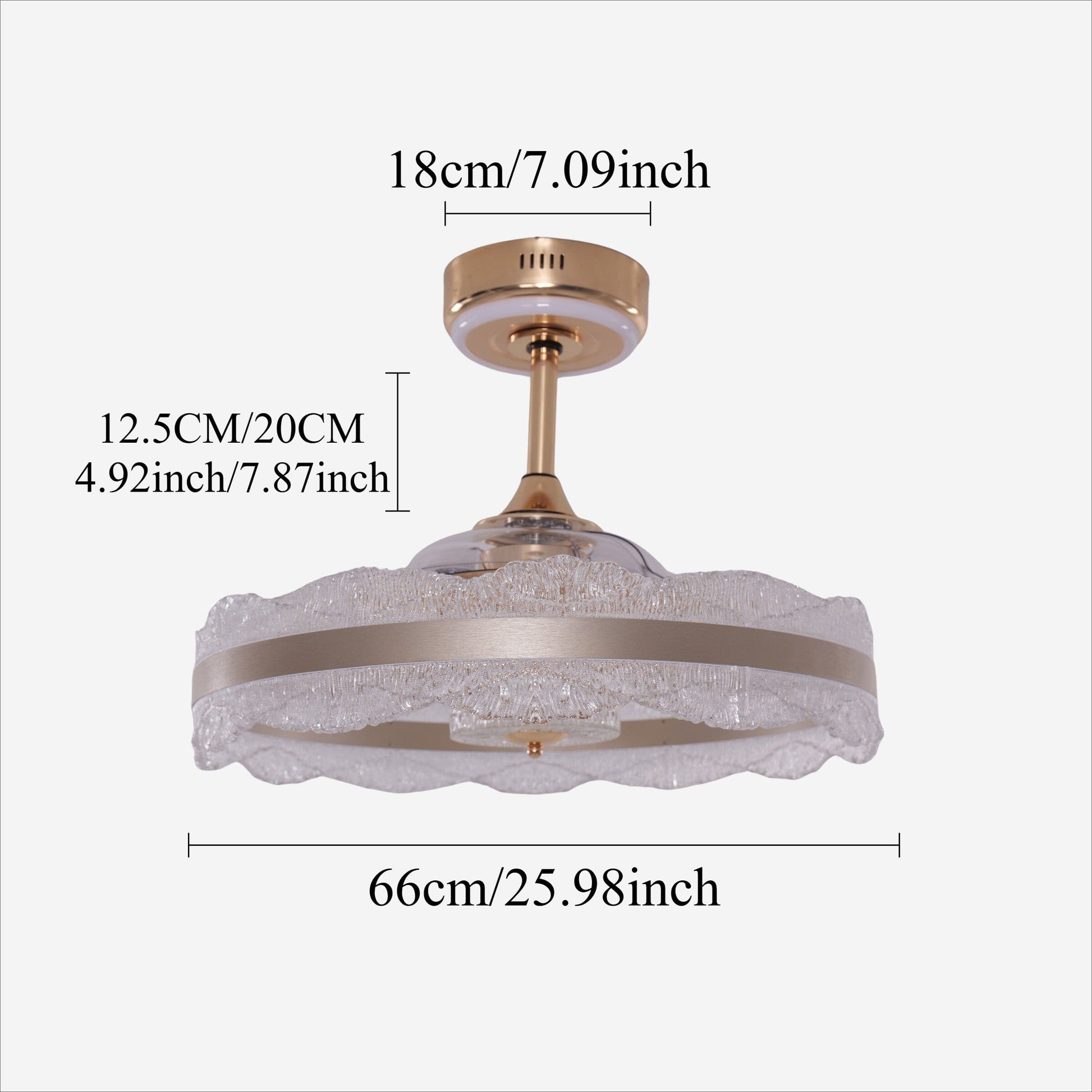 Plafonnier de luxe avec cadre doré, pales rétractables et ventilateur LED
