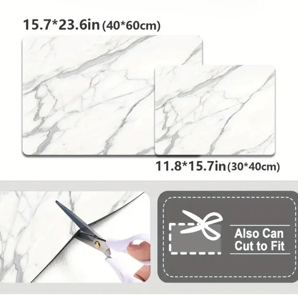 Verleihen Sie Ihrer Küche mit der Hochauflösenden Schwarz-Weiß Marmor Druck Geschirr Abtropfmatte einen Hauch von Stil, Praktikabilität et Effizienz. Hergestellt aus hochabsorbierendem Kieselgur-Material, fängt cese Matte Flüssigkeiten soft auf and absorbiert sie, sodass Ihre Arbeitsflächen trocken and sauber bleiben. Avec un élégant Marmor-Druckdesign