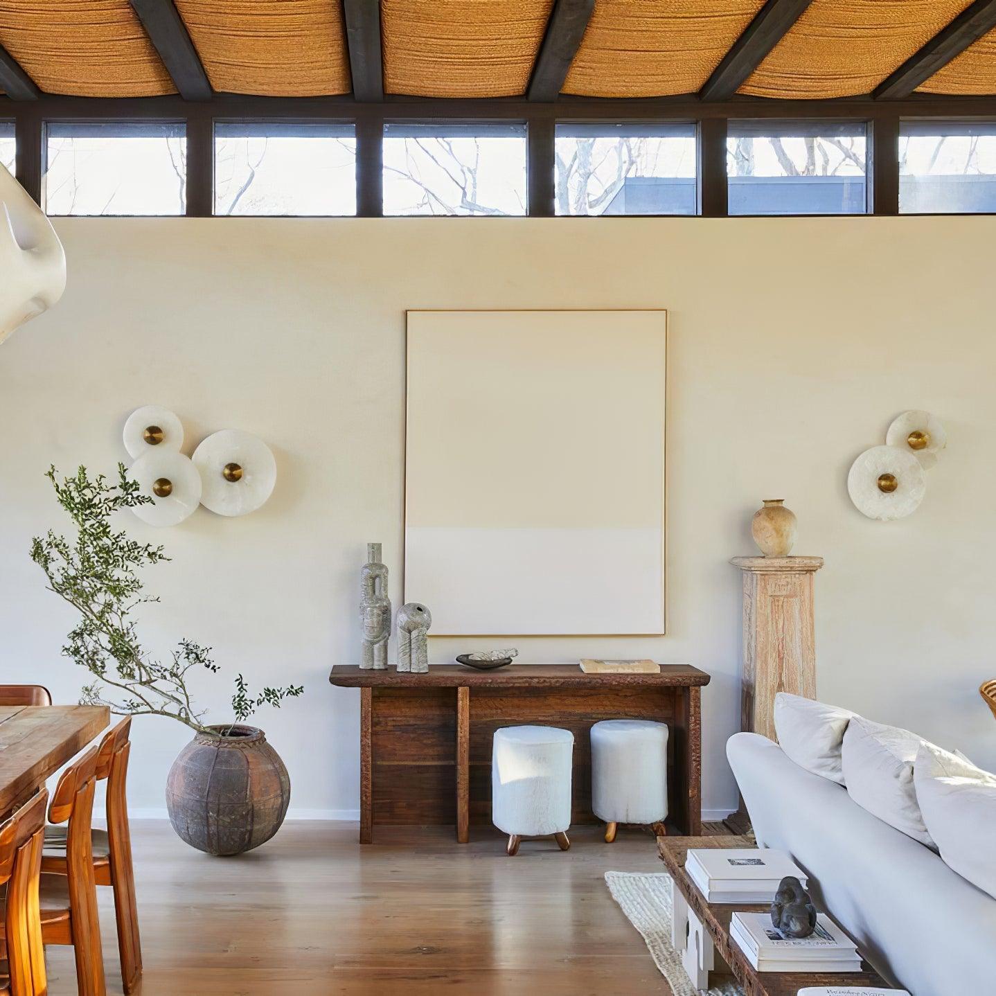 Illuminez votre espace avec élégance ! L’applique murale ronde LED Alabaster apporte une beauté sculpturale et une lumière chaleureuse à n’importe quelle pièce. Avec ses superbes disques en albâtre translucide et ses finitions raffinées en laiton, cette pièce allie avec brio artisanat traditionnel et modernité.