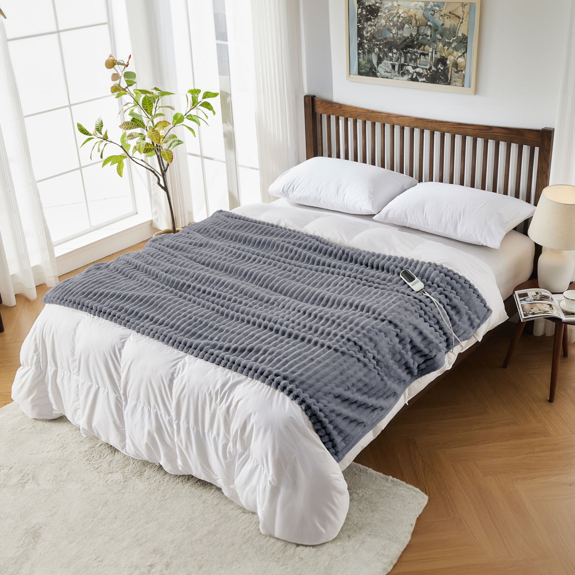 Neo Grijze Elektrische Deken Verwarmde Fleece Overdeken