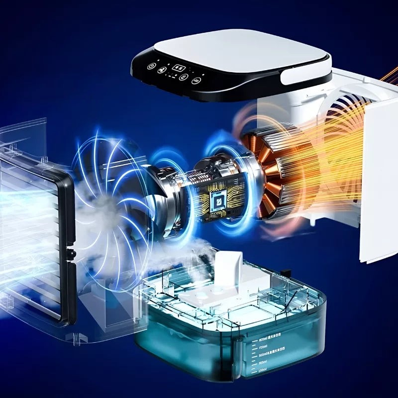 Combattez la chaleur avec ce rafraîchisseur d'air et humidificateur portable . Idéal pour les chambres, les bureaux et les espaces de travail, il rafraîchit et humidifie l'air, vous aidant à rester confortable et productif toute la journée. Avec son ventilateur silencieux et sa veilleuse intégrée, il est parfait pour travailler comme pour se détendre.