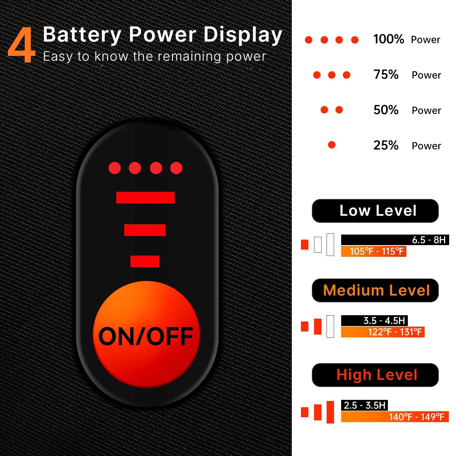 Chaleur rechargeable puissante - Dotés d'un système de batterie de 7,4 V et 22,2 Wh, ces gants procurent une chaleur constante pendant de longues heures dans des environnements froids, vous permettant de profiter de vos aventures en plein air sans souci.