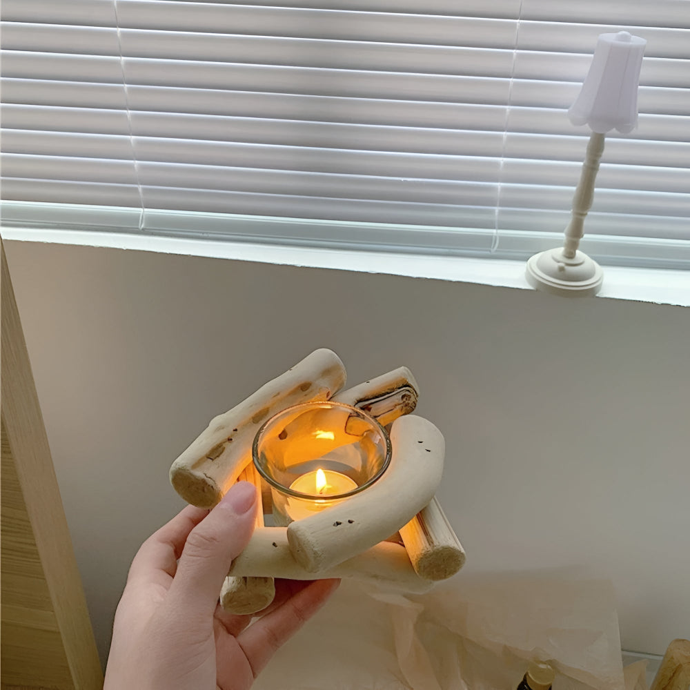 Bougeoir rustique en bois flotté pour la décoration intérieure et une ambiance chaleureuse