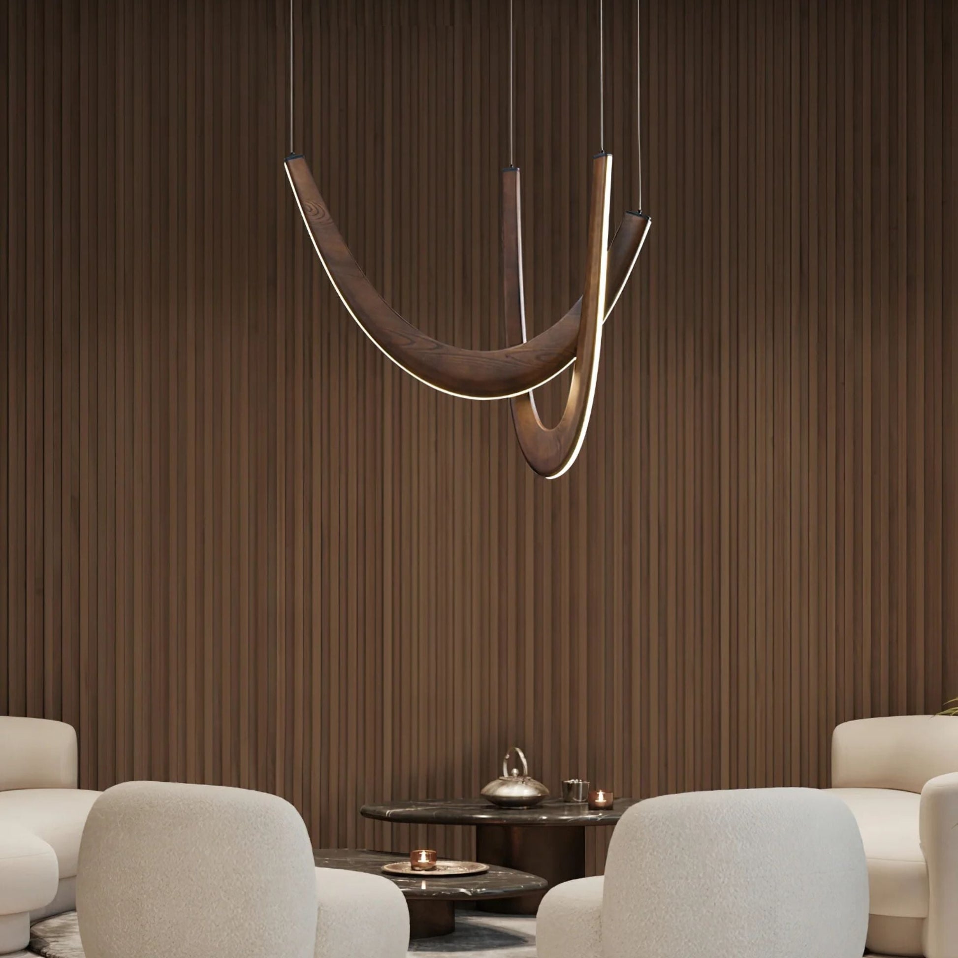 U-Shaped Wooden LED Pendant Light for Modern Home Lighting and Decor
