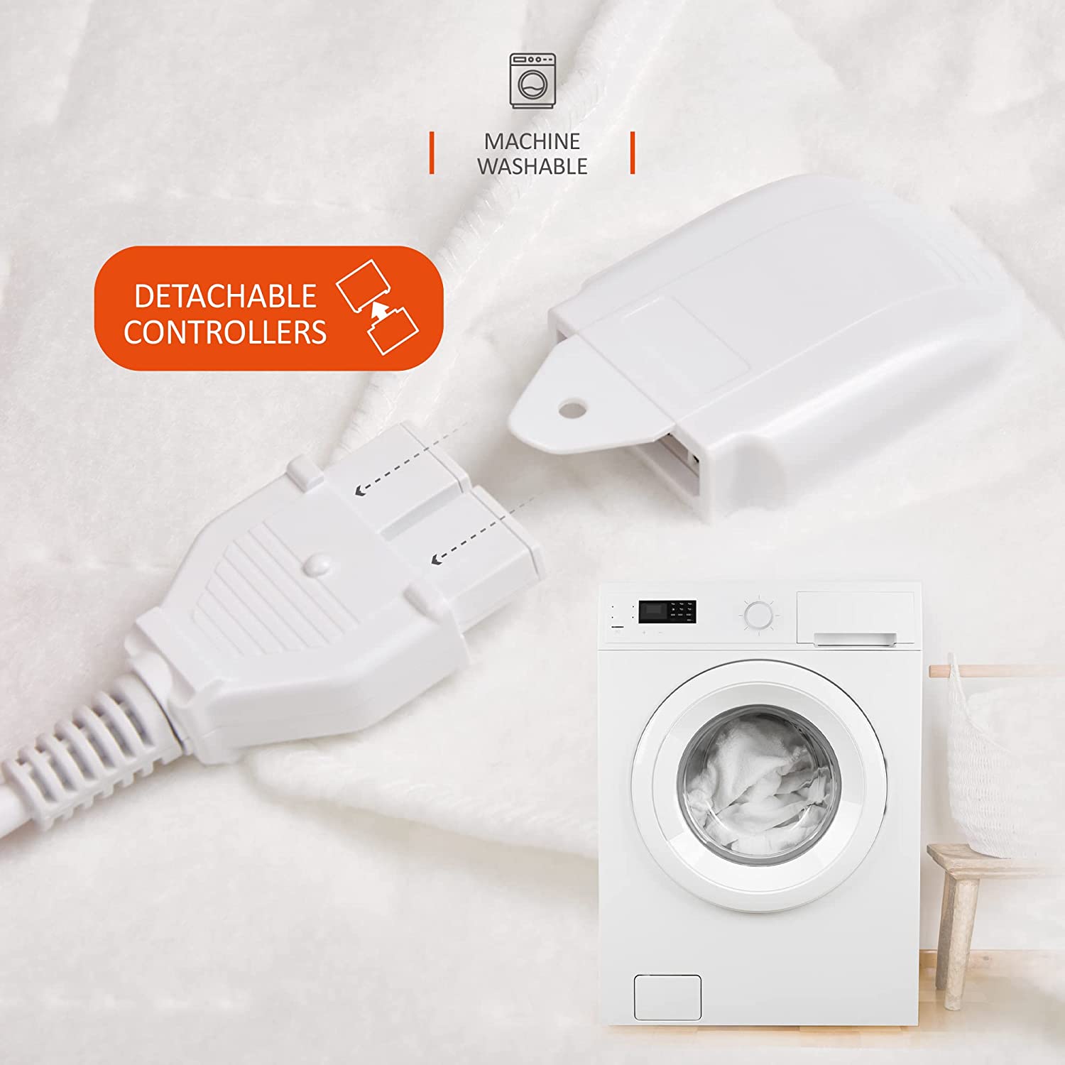 EASY TO USE AND MACHINE WASHABLE:. The controller is detachable and the blanket is made from 100% polyester which means it can be machine washed at low temperatures.