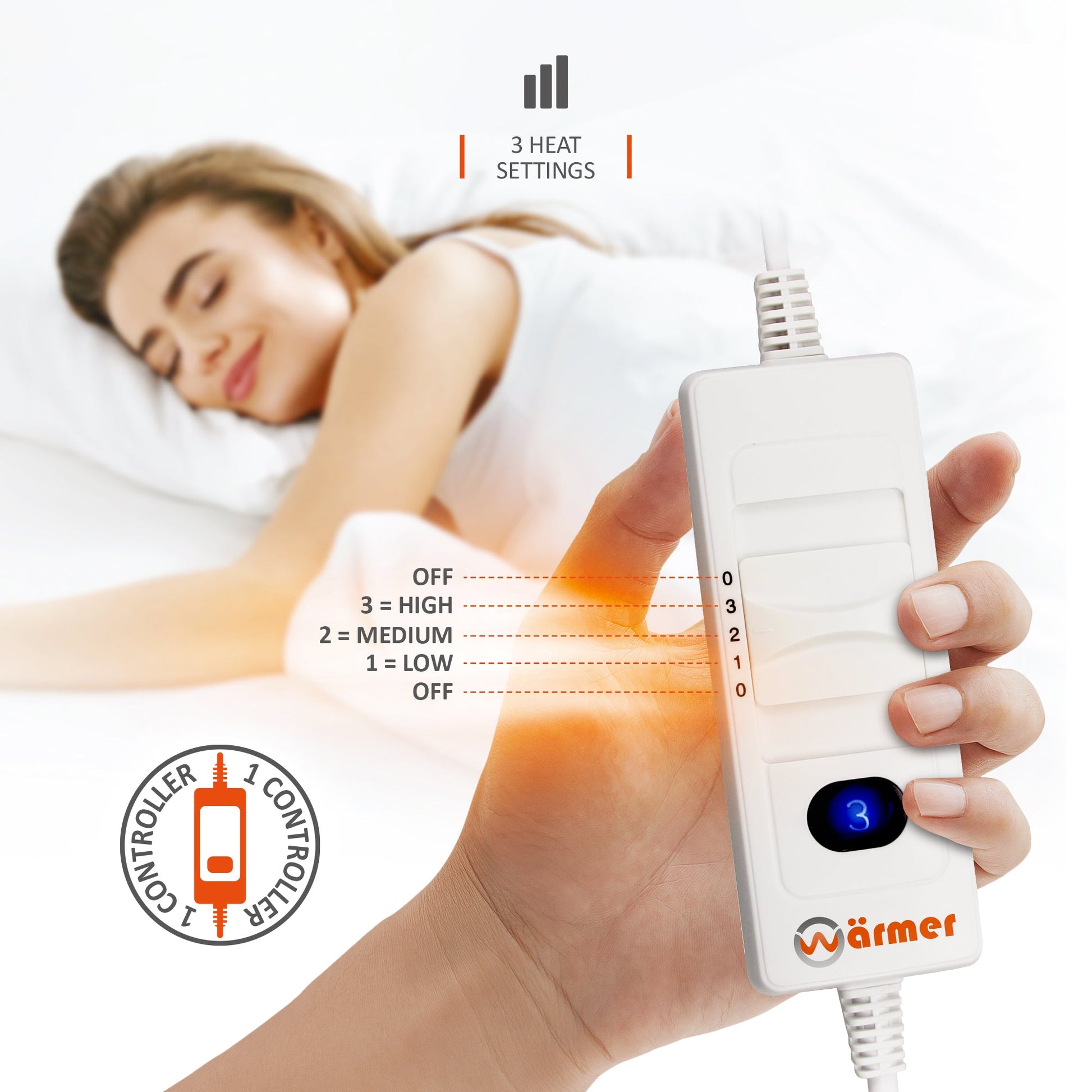 - VOLLEDIG AANGEPASTE VERWARMDE DEKEN: Deze WÄRMER Volledig Aangepaste Verwarmde Deken is de ideale manier om gezellig en warm te blijven wanneer de avonden kouder worden. Met onafhankelijke afstandsbedieningen en drie verschillende warmte-instellingen, is deze deken gegarandeerd om je comfortabel te houden tijdens de koudere nachten.