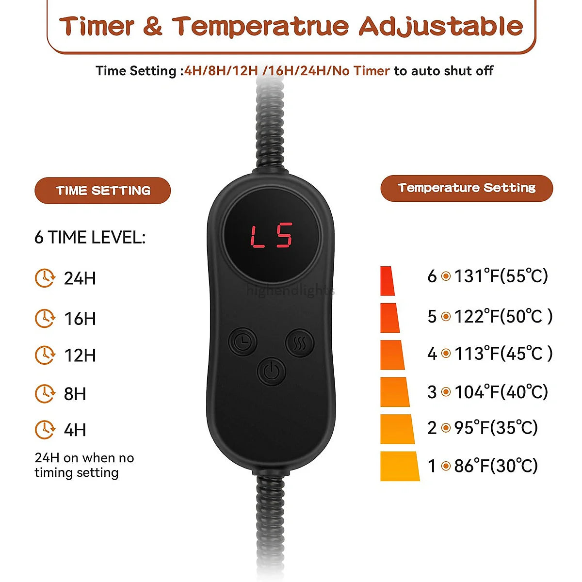 Timed heating options: Choose from four auto-off settings (4H/8H/12H/24H) to manage energy use while ensuring your pet enjoys consistent comfort.